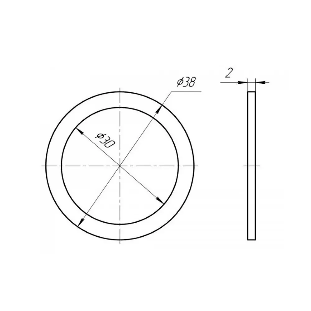 Пласка прокладка ANI Plast М020 має зовнішній діаметр 38 мм. Виготовлена з гуми.