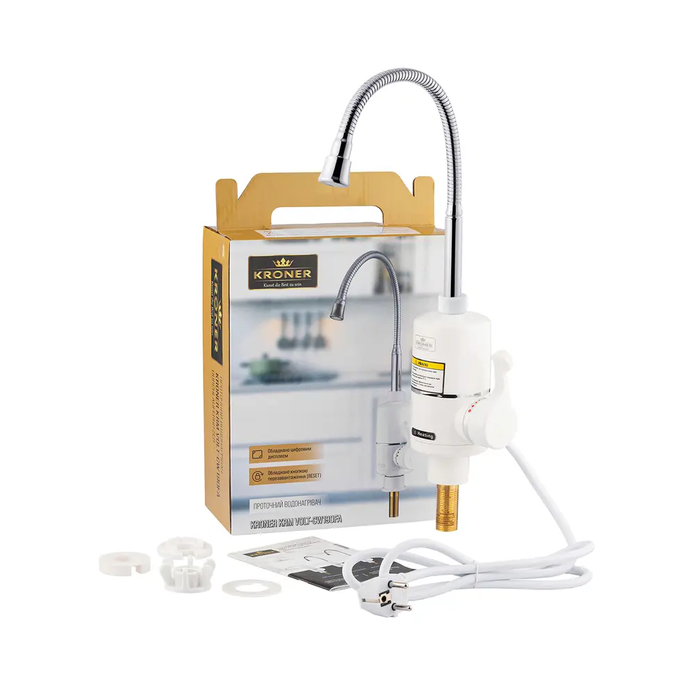 Проточний водонагрівач Kroner KRM Volt-CW190RFA замінює звичайний змішувач та водонагрівач, забезпечуючи постійне нагрівання води в одній точці. Використання Kroner KRM Volt-CW190RFA заощаджує корисний простір на кухні та кошти на купівлю додаткового обладнання. Гнучкий вилив обертається на 360 ° і тим самим дозволяє налаштовувати напрямок потоку води. Нагрів води здійснюється за рахунок ТЕНу з нержавіючої сталі потужністю 3000 Вт, який миттєво нагріває воду, що проходить через нього. Установка и подключение водонагревателей не требует специальных навыков и оборудования - монтаж можно провести самостоятельно, все необходимое для подключения уже есть в комплекте.