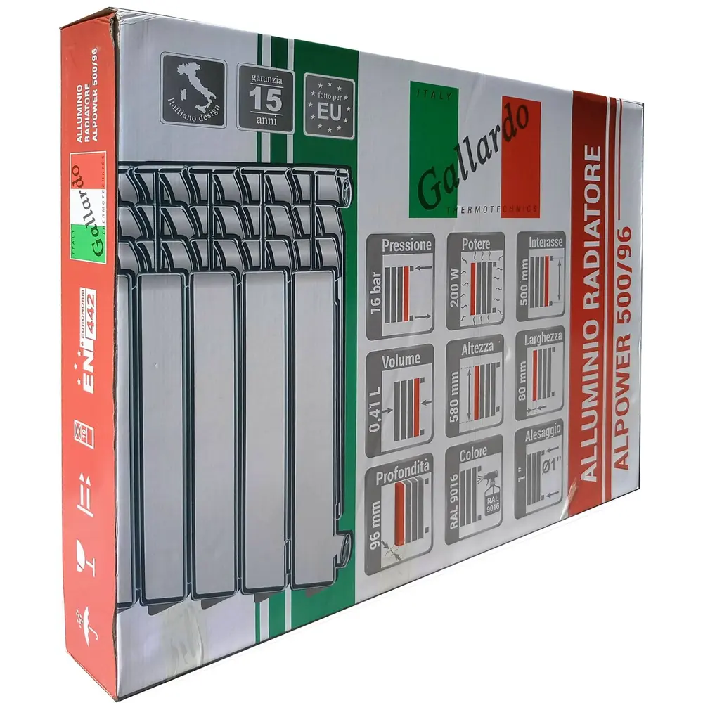 Секция алюминиевого радиатора GALLARDO ALPOWER 500/96 200Вт (кратное 10шт)