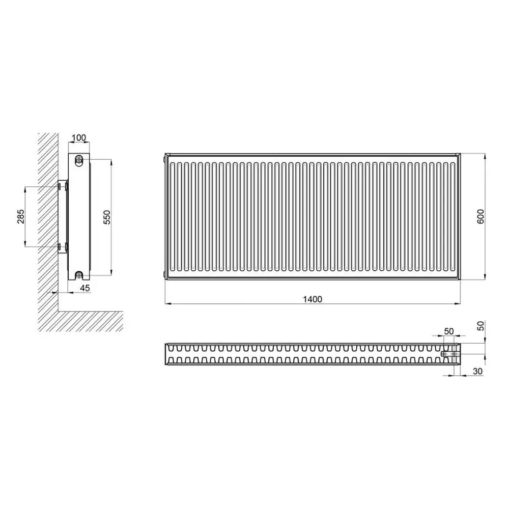 Радіатор сталевий Aquatronic 22 тип 600х1400 нижнє підключення — сучасний опалювальний прилад для настінного монтажу. Сфера застосування — автономні системи опалення з примусовою або природною циркуляцією теплоносія. Максимальна температура робочої рідини – 110 °C. У виробі встановлені дві панелі, всередині яких рухається теплоносій і стільки ж ребер із гофрованої сталі. Верхнє покриття білого кольору стійке до стирання.