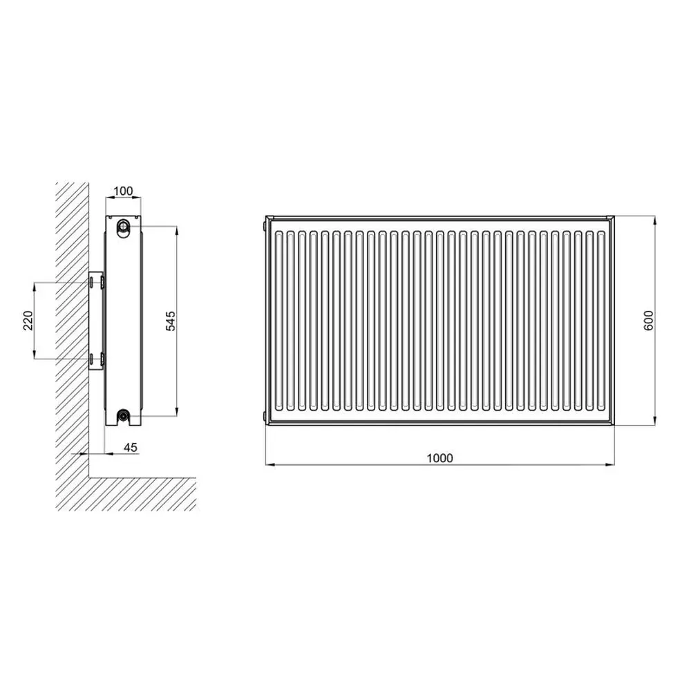 Сталевий панельний радіатор Thermo Alliance 22 типу 600х1000 мм, має бічний спосіб підключення. Товщина сталі - 1,2 мм. Встановлюється в приміщеннях з автономною системою опалення.