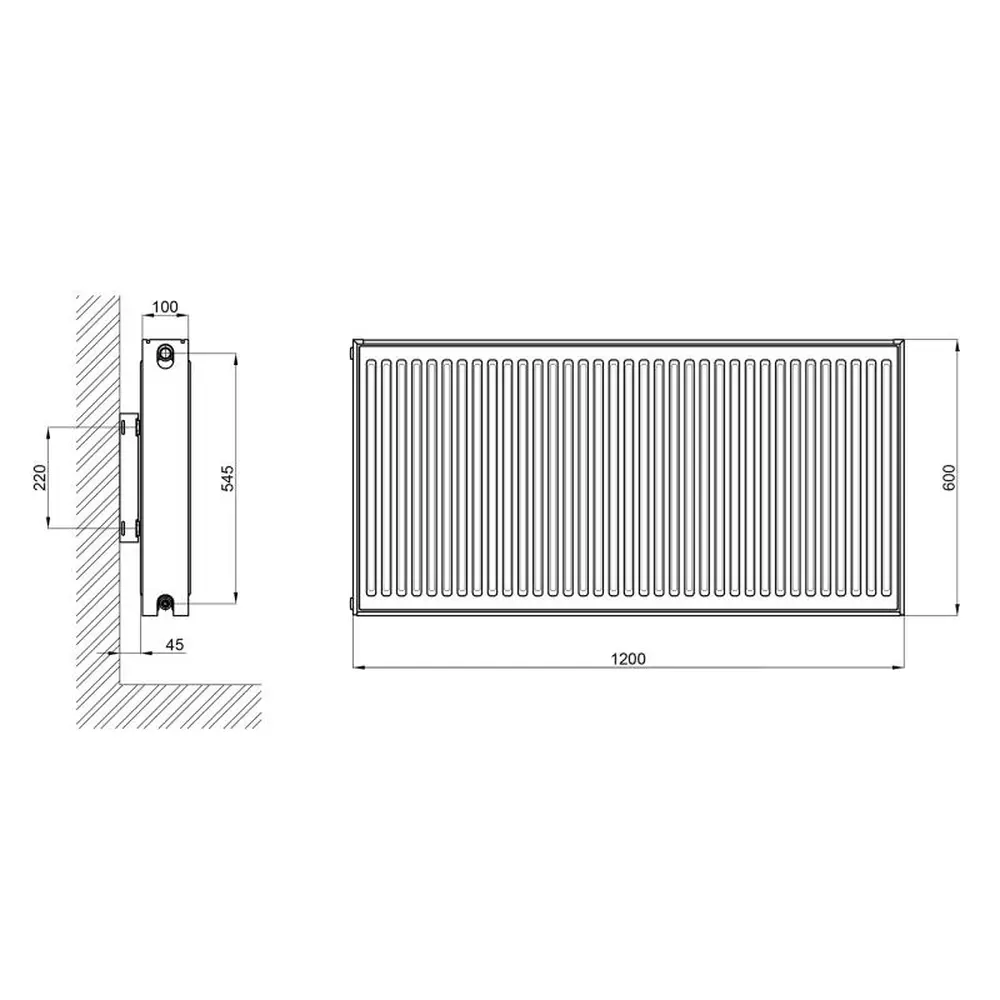 Сталевий панельний радіатор Thermo Alliance 22 типу 600х1200 мм, має бічний спосіб підключення. Товщина сталі - 1,2 мм. Встановлюється в приміщеннях з автономною системою опалення.