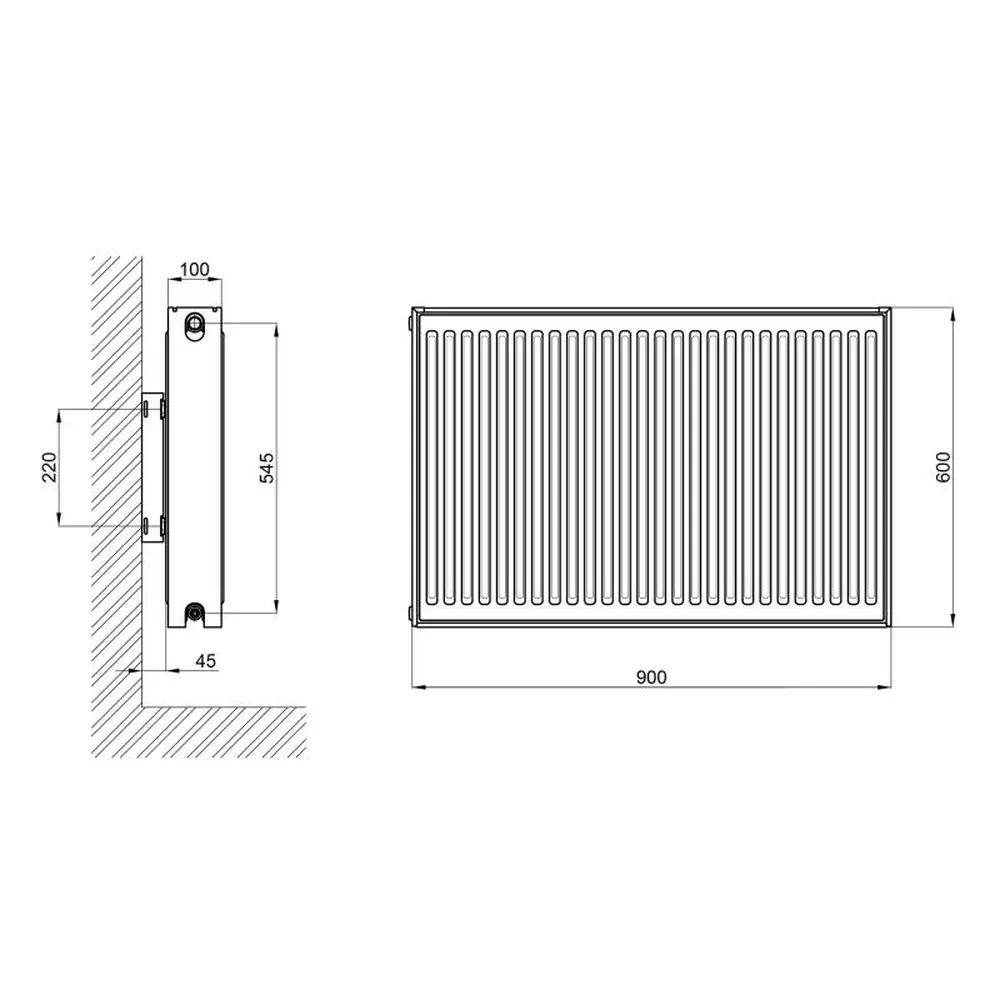 Сталевий панельний радіатор Thermo Alliance 22 типу 600х900 мм, має бічний спосіб підключення. Товщина сталі - 1,2 мм. Встановлюється в приміщеннях з автономною системою опалення.