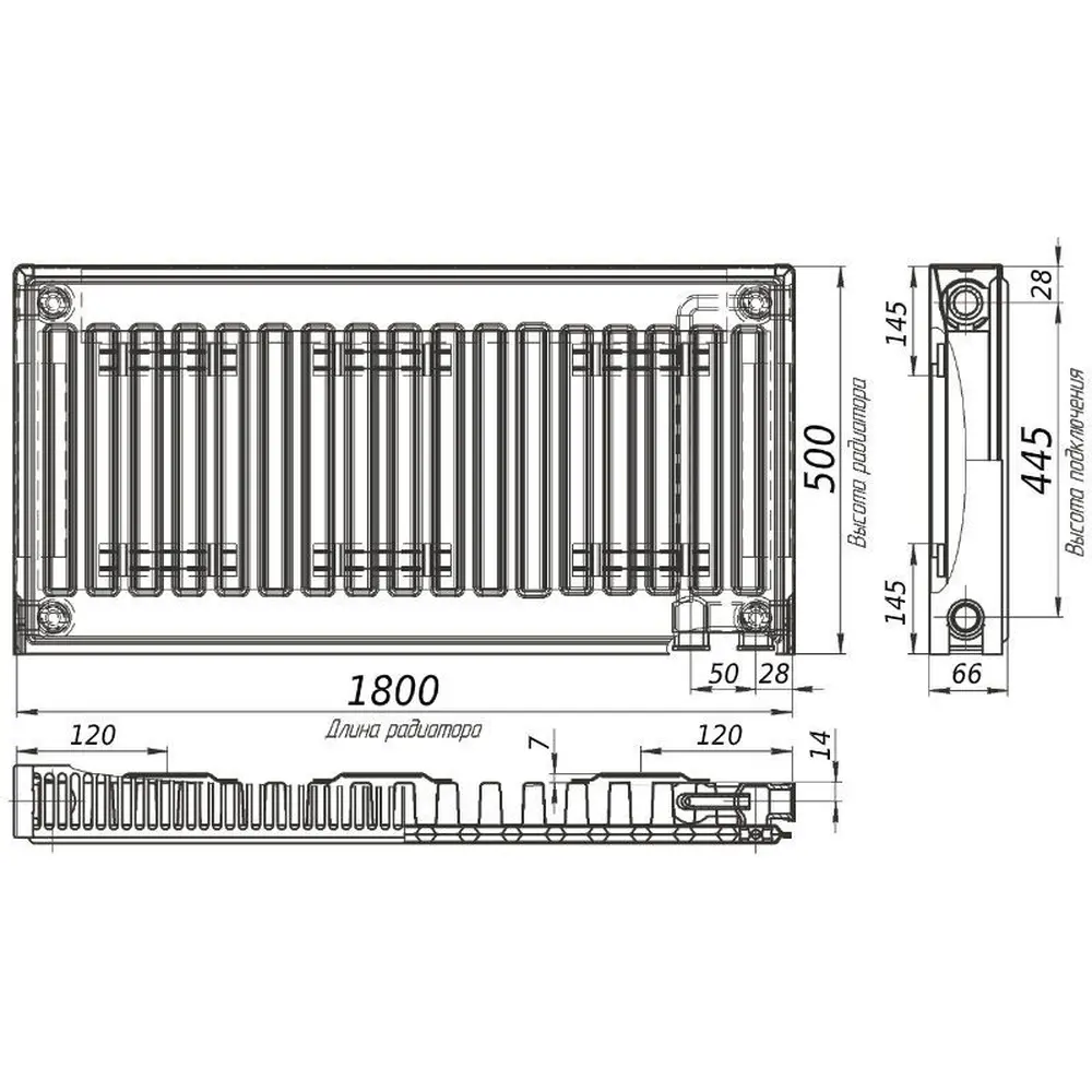 Радиатор стальной панельный тип 11 (низ.пр) 500х1800 KALDE 0311-cpr-501801 2006Вт