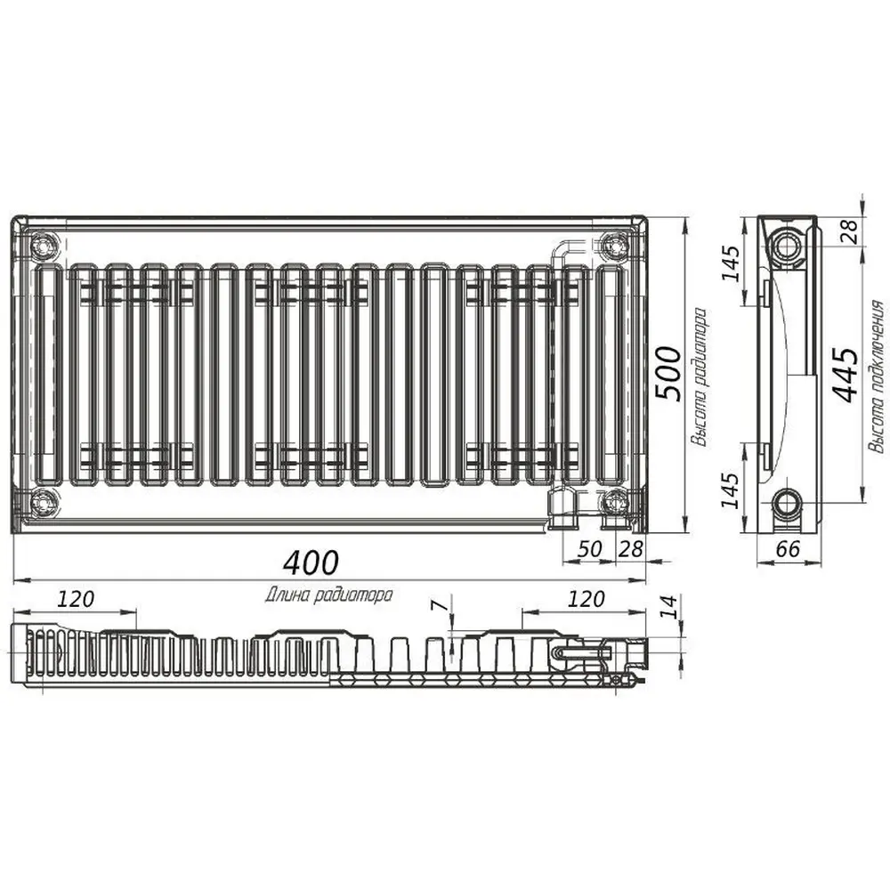 Радиатор стальной панельный тип 11 (низ.пр) 500x400 KALDE 0311-cpr-500401 446Вт