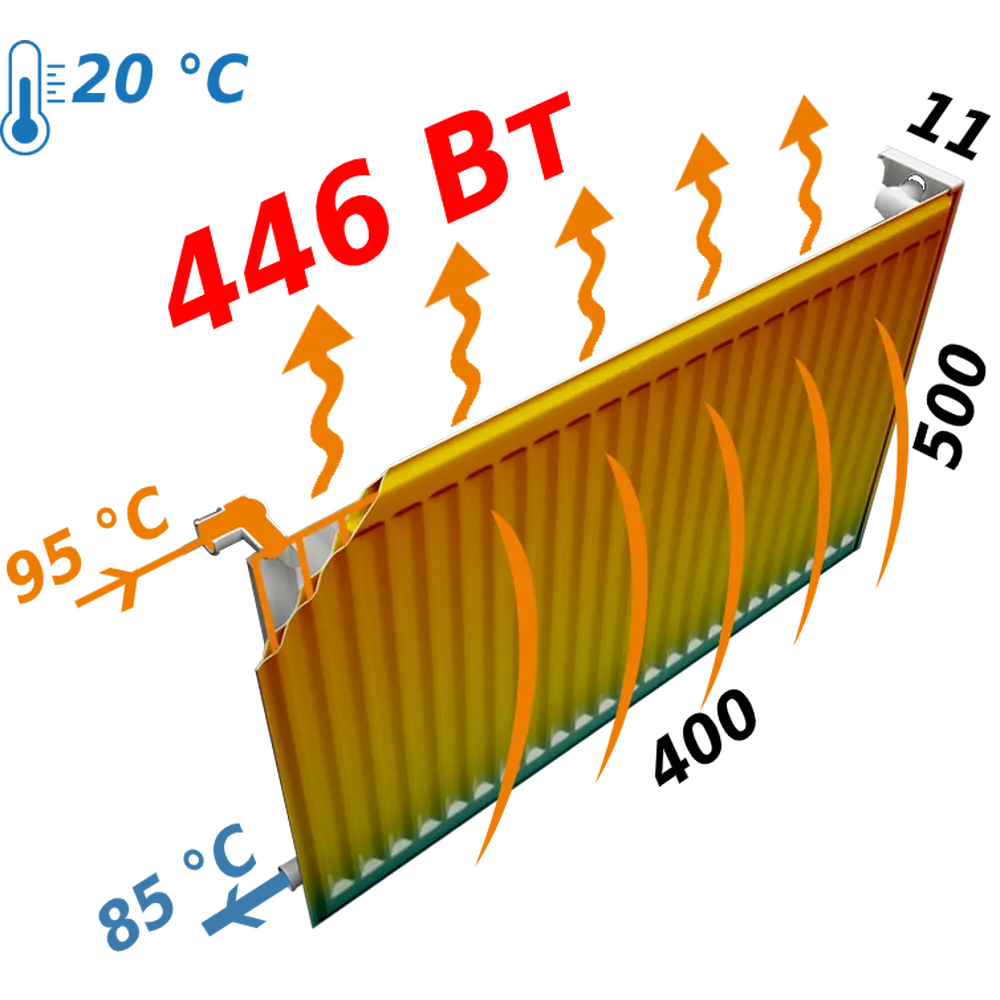 Тепловая мощность Δt = 70/60/50 ° C, Вт - 446/357/286