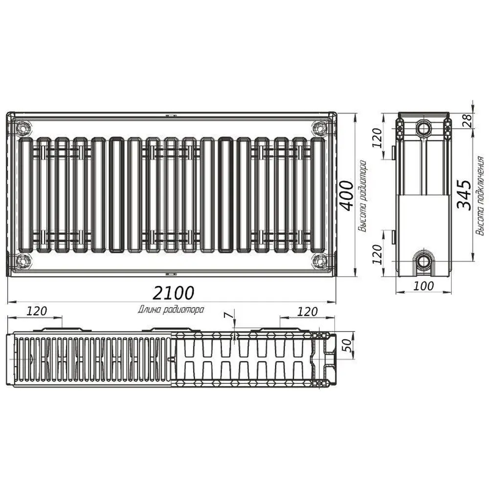 Радиатор стальной панельный тип 22 (бок) 400х2100 KALDE 0322-rad-402100 3927Вт