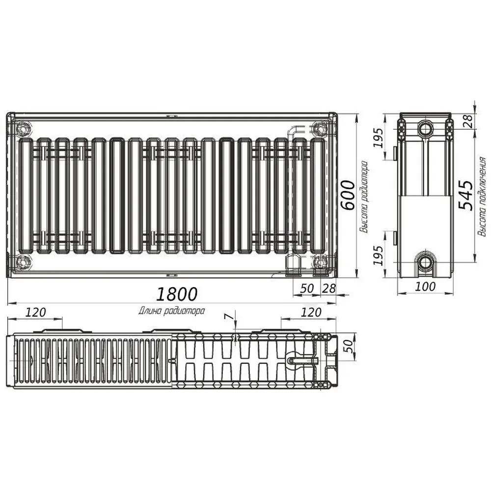 Радиатор стальной панельный тип 22 (низ.пр) 600х1800 KALDE 0322-cpr-601800 4748Вт