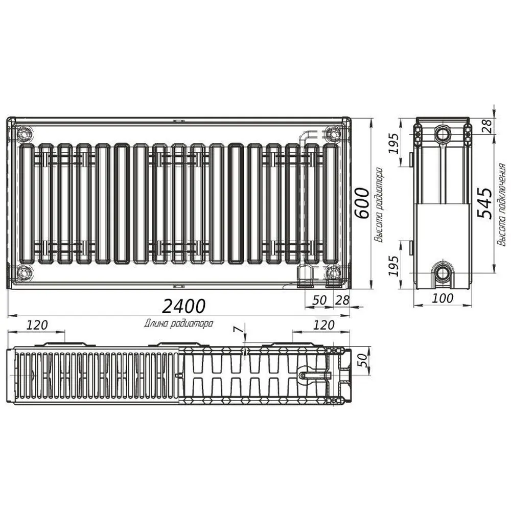 Радиатор стальной панельный тип 22 (низ.пр) 600х2400 KALDE 0322-cpr-602400 6330Вт