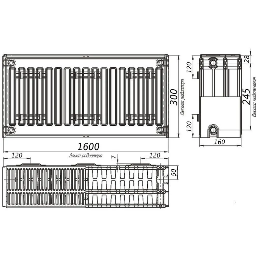 Радиатор стальной панельный тип 33 (бок) 300х1600 KALDE 0333-rad-301600 3098Вт