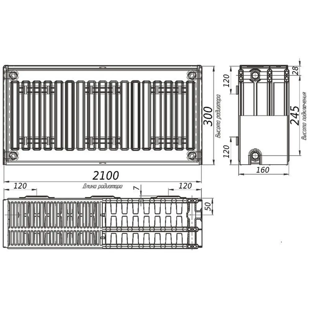 Радиатор стальной панельный тип 33 (бок) 300х2100 KALDE 0333-rad-302100 4066Вт