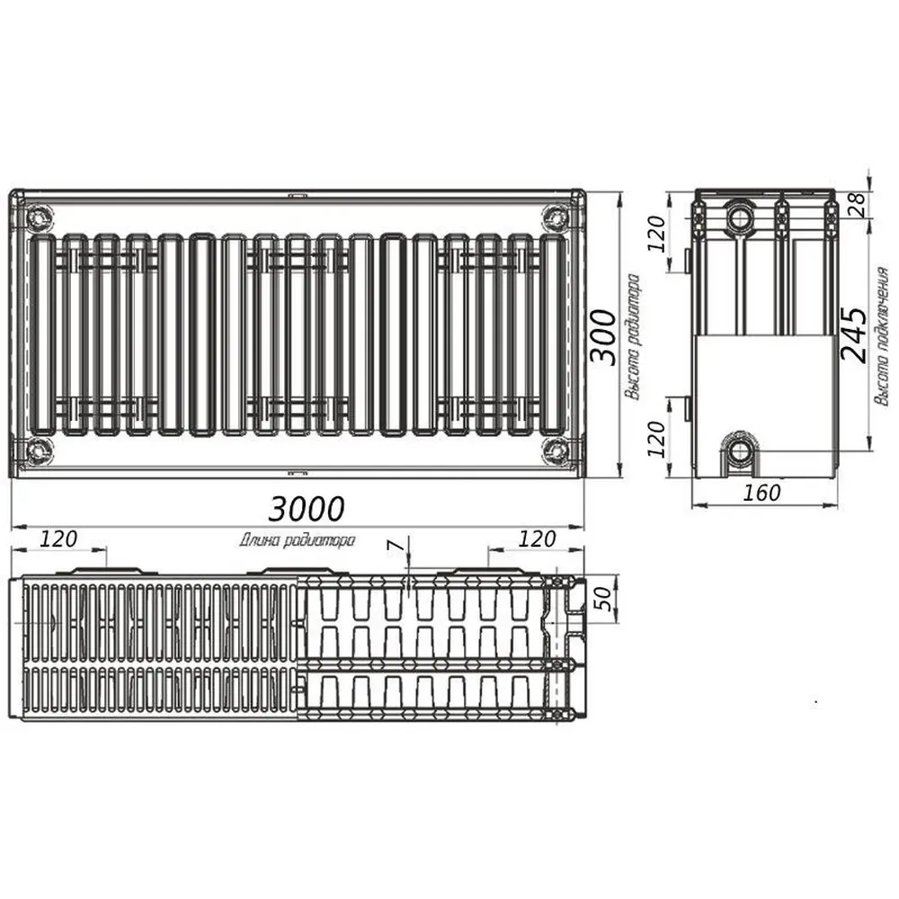 Радиатор стальной панельный тип 33 (бок) 300х3000 KALDE 0333-rad-303000 5808Вт