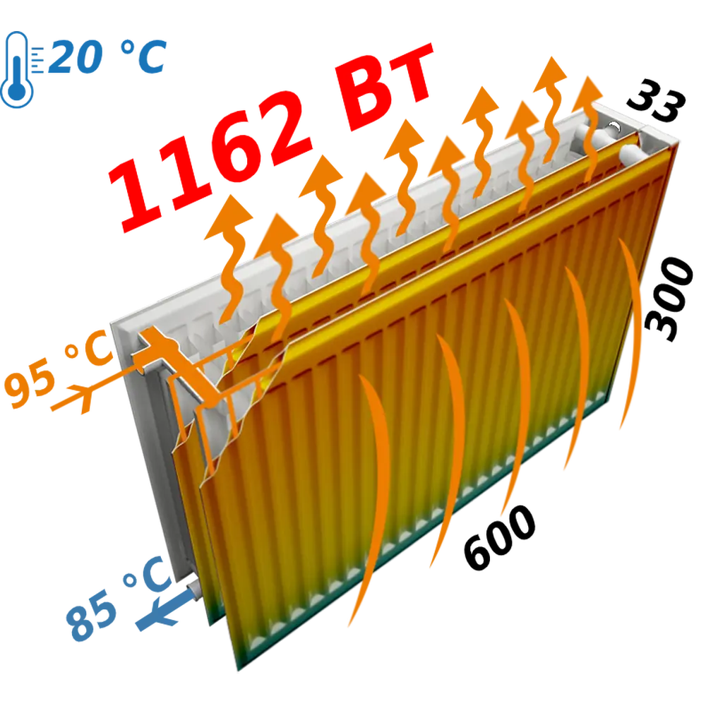 Радиатор стальной панельный тип 33 (бок) 300x600 KALDE 0333-rad-300600 1162Вт