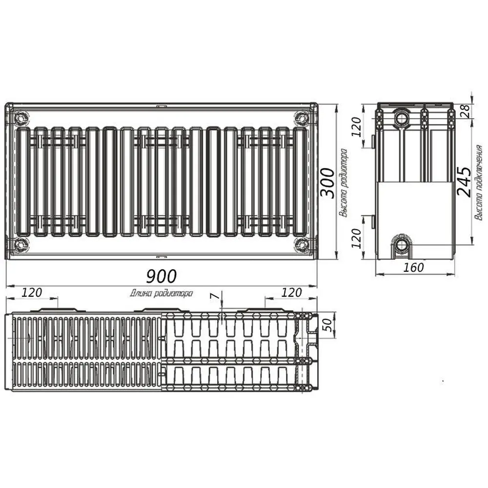 Радиатор стальной панельный тип 33 (бок) 300x900 KALDE 0333-rad-300900 1743Вт