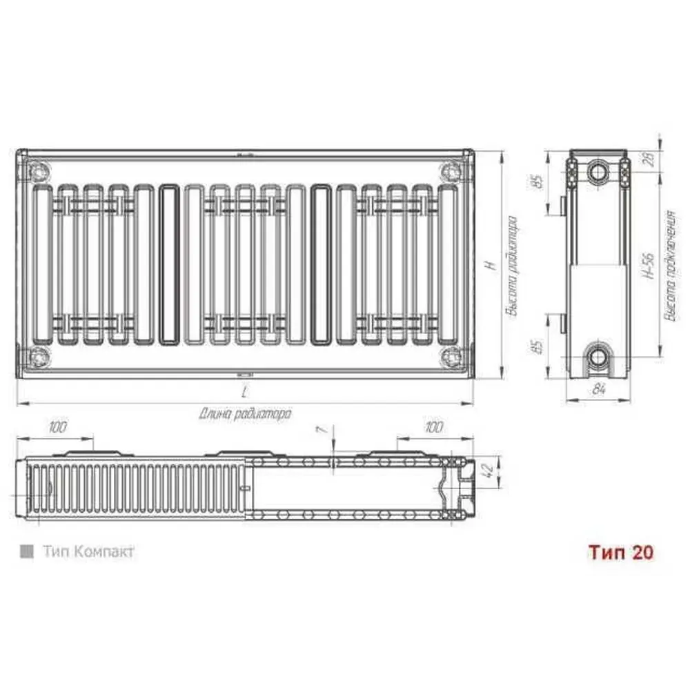 Радиатор стальной панельный тип 20K (бок) 500х1100 OPTIMUM 2032Вт
