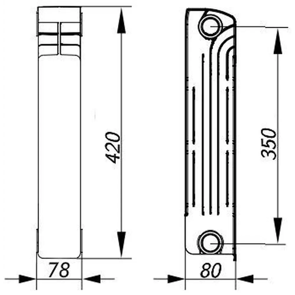 Секція біметалічного радіатора GALLARDO BISHORT 350/80 138Вт (кратне 10шт)