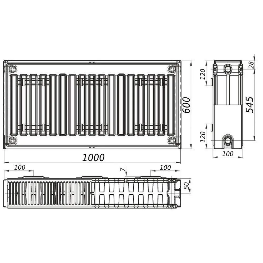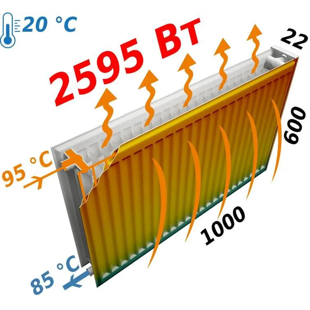 Радіатор сталевий панельний FORNELLO 22-типу бокового підключення 600-висоти 1000-довжини