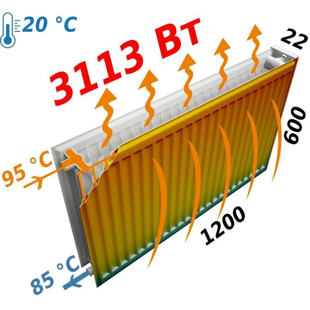 Радіатор сталевий панельний FORNELLO 22-типу бокового підключення 600-висоти 1200-довжини