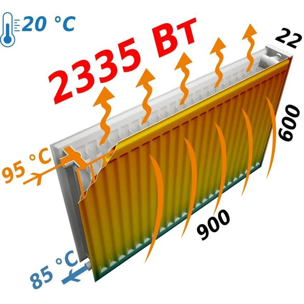 Радіатор сталевий панельний FORNELLO 22-типу бокового підключення 600-висоти 900-довжини