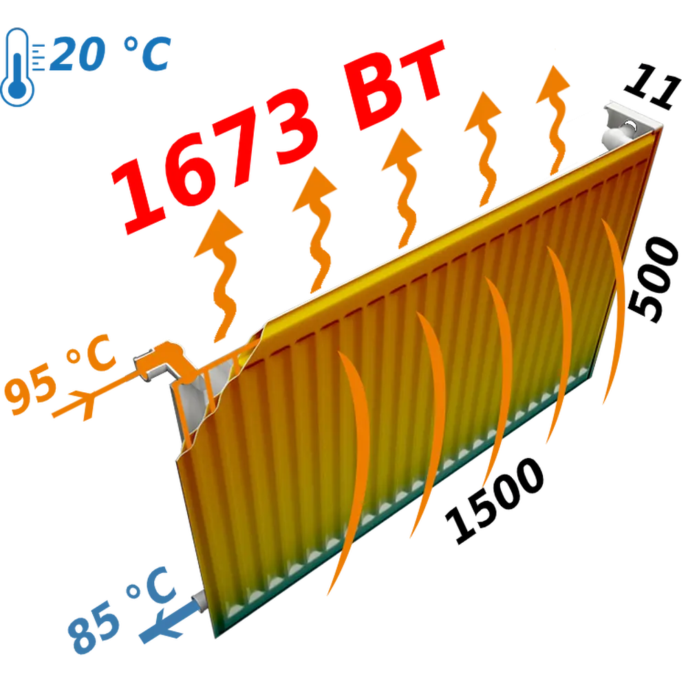• Теплова Потужність ∆t=70/60/50°C, Вт - 1672/1338/1070