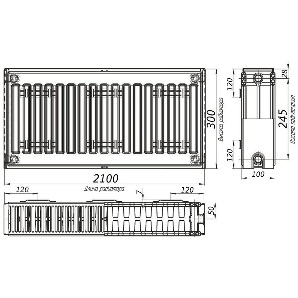 Радіатор сталевий панельний тип 22 (бок) 300х2100 KALDE 0322-rad-302100 3080Вт
