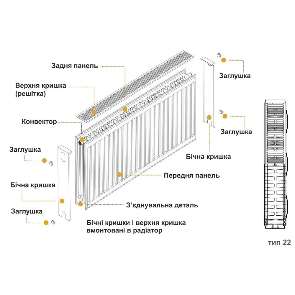 Радіатор сталевий панельний тип 22 (бок) 500х2500 KALDE 0322-rad-502500 5650Вт