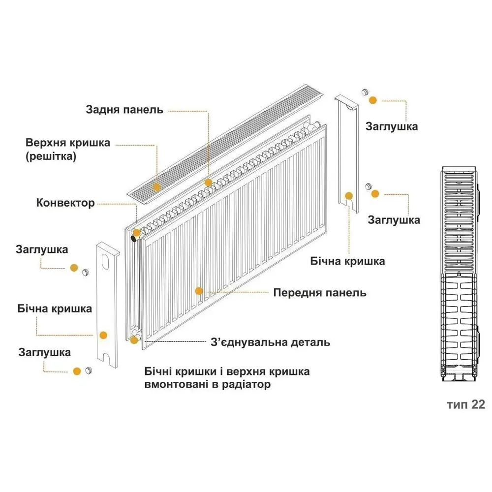 Радіатор сталевий панельний тип 22 (бок) 500x600 KALDE 0322-rad-500600 1356Вт
