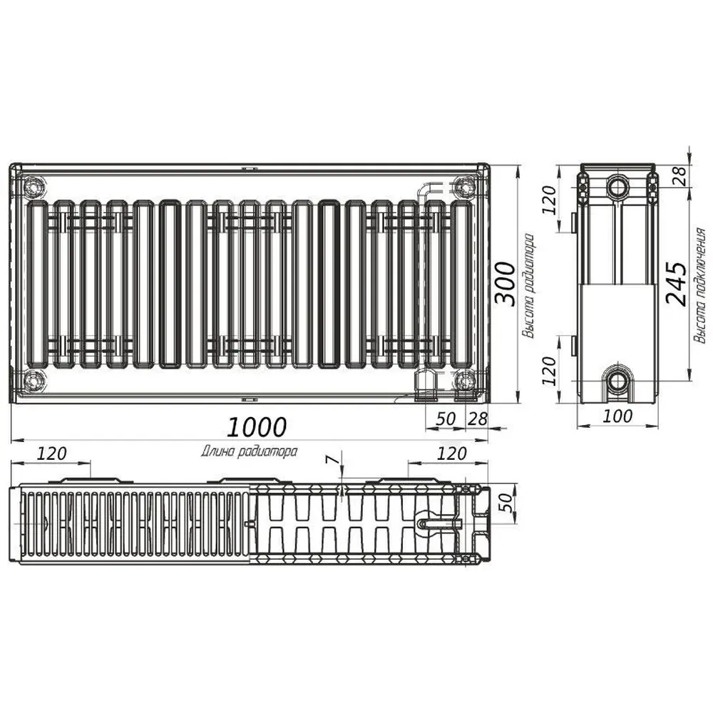 Радіатор сталевий панельний тип 22 (низ.пр) 300х1000 KALDE 0322-cpr-301000 1466Вт