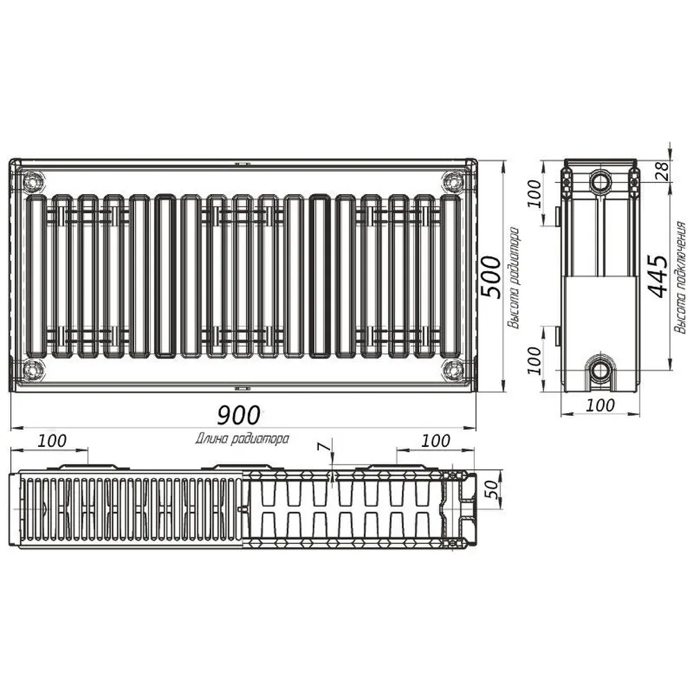Радіатор сталевий панельний тип 22K (бок) 500x900 OPTIMUM 1836Вт