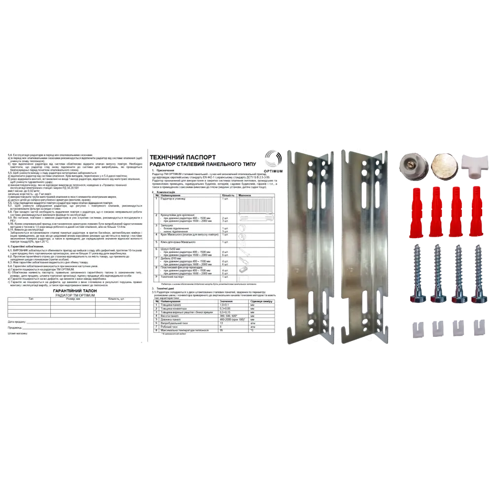 Радіатор сталевий панельний тип 22K (бок) 600х1000 OPTIMUM 2448Вт