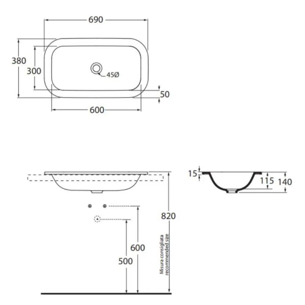 Раковина Azzurra Glaze GLZ69X38B1/IN монтується в стільницю і таким чином не забирає багато місця в тумбі, а всі підводи приховані. Виріб виконаний з кераміки в білому кольорі з глянцевою поверхнею. Наявність отворів для змішувача та для переливу не передбачено. У такому випадку змішувач встановлюється на стіну або на стільниці. Діаметр зливного отвору d=45 мм. Завдяки відсутності кутів виріб легко миється. На одну зі стінок нанесено фірмовий логотип виробника.