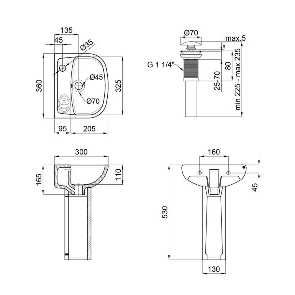 Раковина, донний клапан, п‘єдестал, кріпильні деталі.