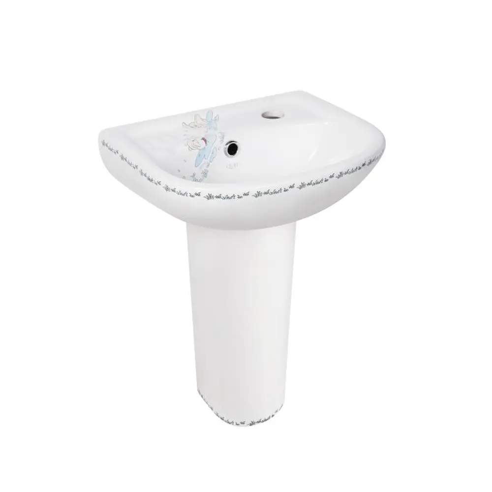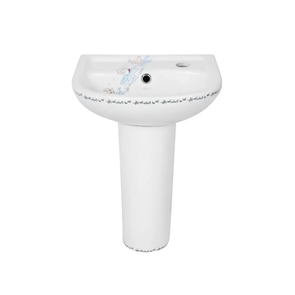 Раковина для підлоги Qtap Baby 375x305x520 White QT2311LP304BW виконана спеціально для використання дітьми. Вона виготовлена із якісної кераміки білого кольору. У комплектацію входить п‘єдестал, який приховує комунікацію та надає більш естетичного вигляду виробу. Керамічний донний клапан потрібен для перекриття зливного отвору за потреби. Виріб підходить для використання разом із урізним змішувачем. На виріб нанесено малюнок.