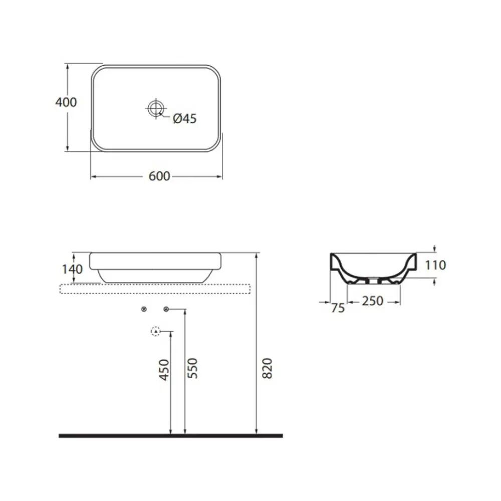Современная раковина-чаша Azzurra Elegance soft ESO60B1 популярна благодаря своей прямоугольной форме. Такую раковину следует устанавливать на столешницу, чтобы сэкономить место в тумбе, с учетом дизайнерского решения. Раковина прекрасно дополнит ванну в стиле классика или ретро. Она выполнена из одной чаши со сливным отверстием d = 45 мм. Высота чаши с учетом подножки 140 мм, высота бортиков - 75 мм. Также рекомендуем приобрести керамический донный клапан для перекрытия сливного отверстия в случае необходимости.