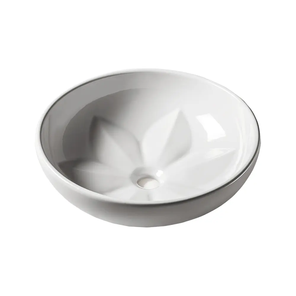 Раковина-чаша Azzurra Fleur FLE200B1 имеет круглую форму и гладкую поверхность, что упрощает уход за изделием. Дно чаши декорировано в виде цветка, поэтому с такой раковиной ваша ванная комната станет особенной и неповторимой. Она выполнена из керамики в белом цвете, не оборудована отверстиями для смесителя и для перелива. В таком случае, ее прекрасно дополнит врезной высокий смеситель или настенный смеситель, что придаст ванной в стиле модерн или классика более современный вид.
