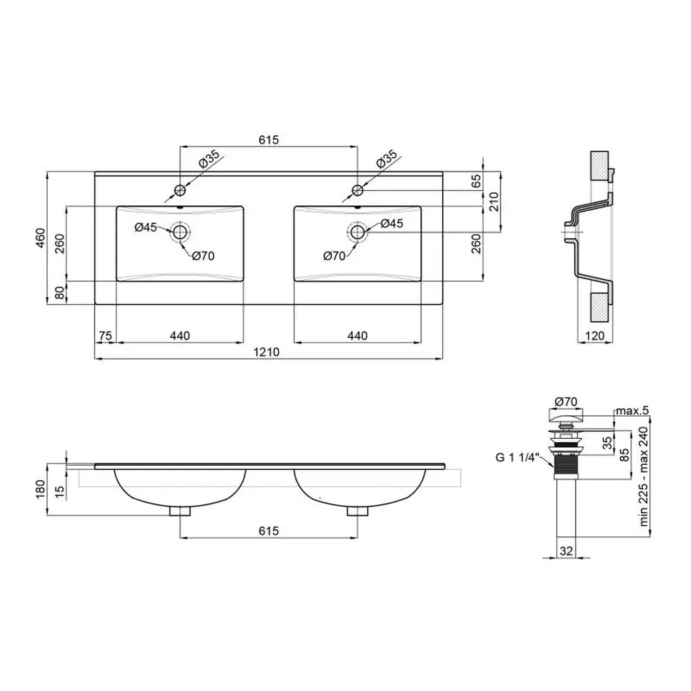 Подвійна раковина Qtap Albatross ED 1200х460х180 White QT01119120EDW виготовлена з якісної кераміки білого кольору і має дві чаші. До комплектаціі входить донний клапан для перекриття зливного отвору. Виріб монтується у стільницю урізним способом, що виглядає естетично і приховує підведення. Підходить для використання спільно з урізними змішувачами. На бортах раковини можна зберігати аксесуари для ванної. Очищення раковини здійснюється миючими засобами, що не містять абразиви.