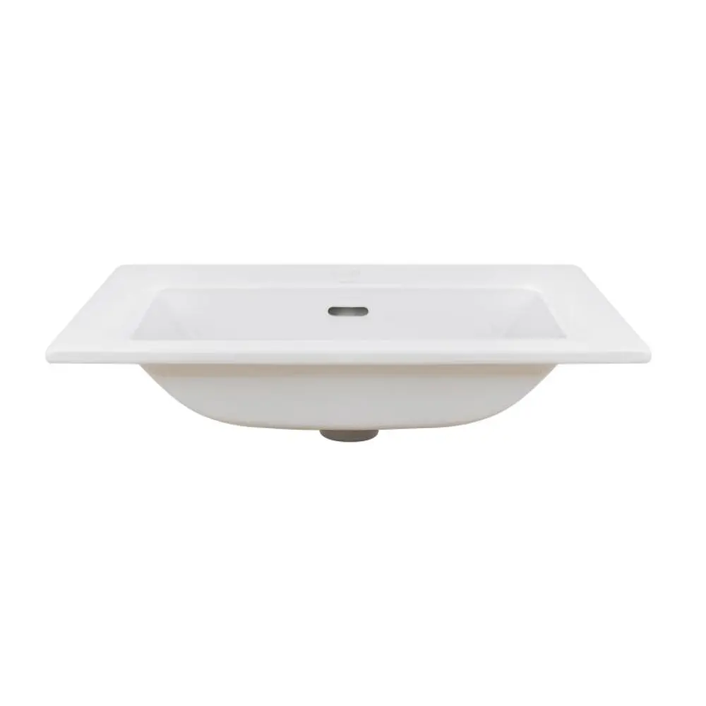 Раковина Qtap Stork 610х420х170 White QT1511L738W виготовлена з якісної кераміки білого кольору прямокутної форми. У комплект поставки входить донний клапан для перекриття зливного отвору за потреби. Виріб монтується у стільницю урізним способом, що виглядає естетично, економить місце та приховує усі підведення. Очищення раковини здійснюється звичайними миючими засобами, що не містять абразиви. Підходить для використання разом із урізним змішувачем.