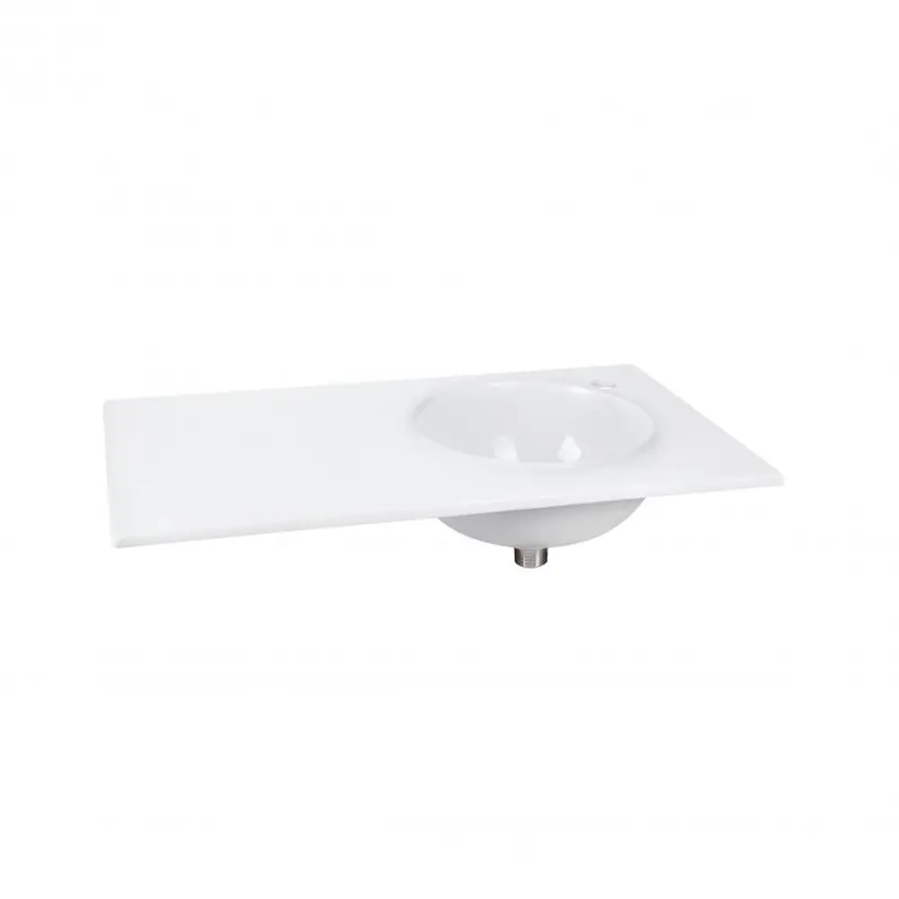 Раковина Qtap Virgo 800х460х300 White QT1811FL8130ARRW виготовлена з якісної кераміки білого кольору. У комплектацію входить донний клапан для перекриття зливного отвору. Виріб монтується у стільницю урізним способом, що виглядає естетично і приховує усі підводи. Підходить для використання спільно з урізним змішувачем. Виріб оснащений крилом, на якому можна зберігати аксесуари для ванної. Очищення раковини здійснюється спеціальними миючими засобами, що не містять абразиви.