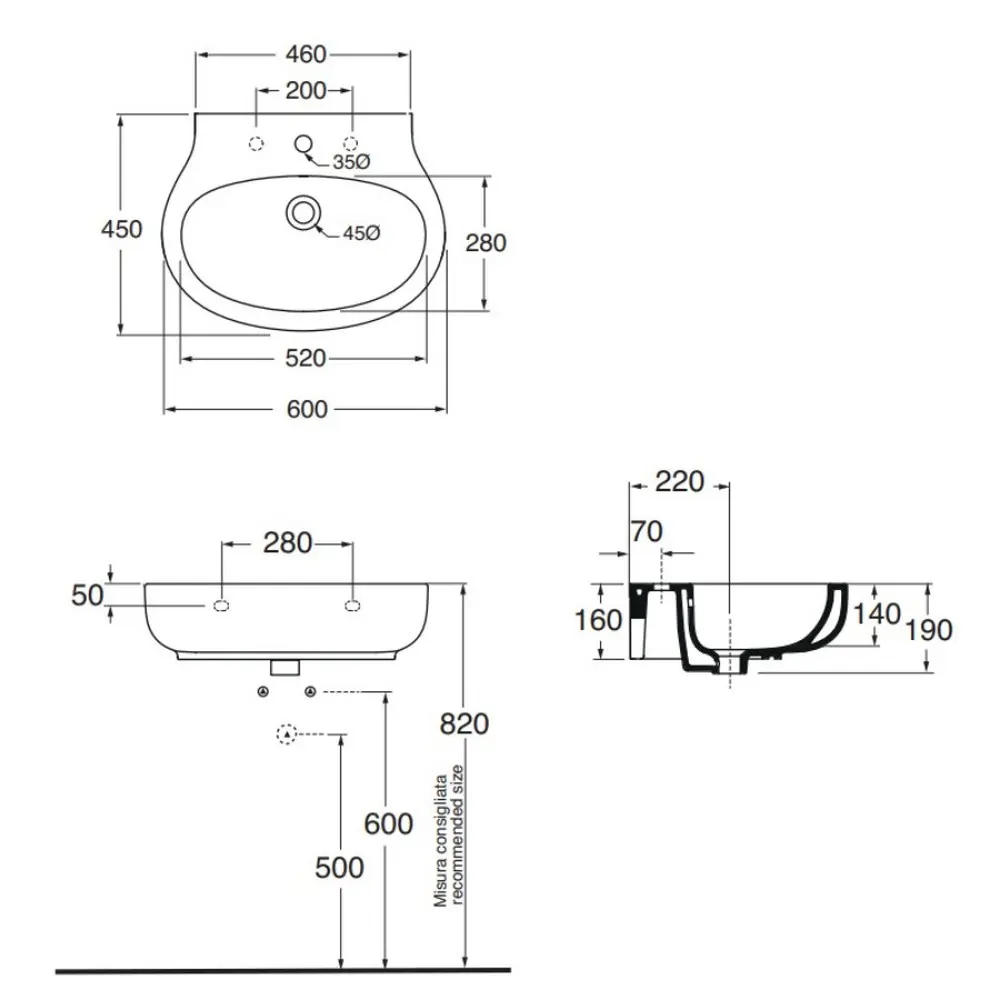 Раковина Azzurra Vera VER60B1/SOSP виконана з білої кераміки і має класичні форми, які доповнять ванну з будь-яким інтер‘єром. На раковині передбачено отвір під змішувач з діаметром d=35 мм. Діаметр зливного отвору d=45 мм. Змішувач можна встановити на стіну і таким чином додати кімнаті сучасності. Виріб обладнано отвором для переливання води і поверхнею для розміщення ванних приладь та аксесуарів.