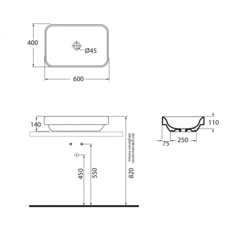 Раковина-чаша Azzurra Tulip ESO60B1 монтується урізним способом в стільницю. Вона виконана з білої кераміки і має глянсову поверхню. Відсутність кутів робить догляд швидким. У виробі не передбачені отвори для змішувача та для переливу. Змішувач можна встановити на стіні, що виглядає дуже сучасно та незвично.
