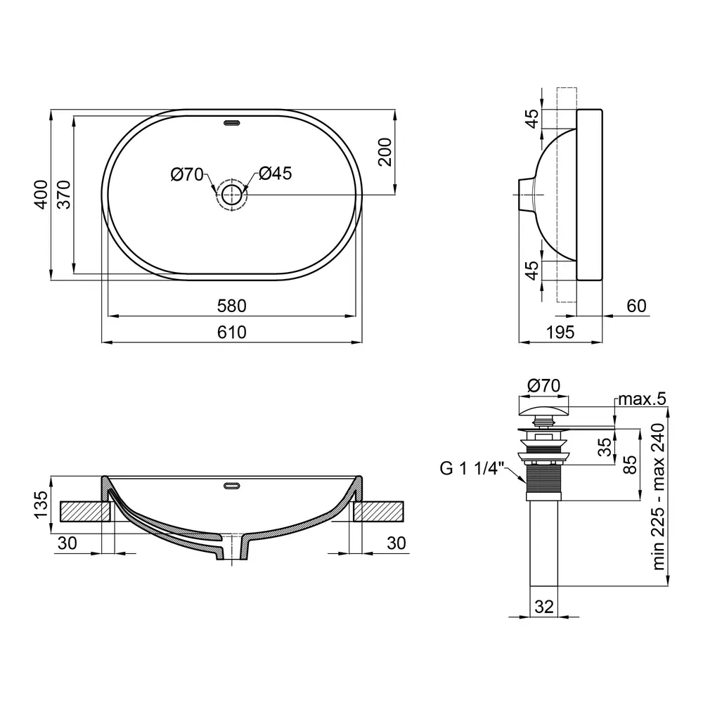 Раковина Qtap Leo QT11114028W виготовлена з якісної кераміки білого кольору овальної форми. У комплект поставки входить донний клапан для перекриття зливного отвору за потреби. Виріб монтується в стільницю урізним способом, що виглядає естетично, економить місце і приховує все підводи. Очищення раковини здійснюється спеціальним миючим засобом, що не містить абразиви. Підходить для використання разом з урізним змішувачем.