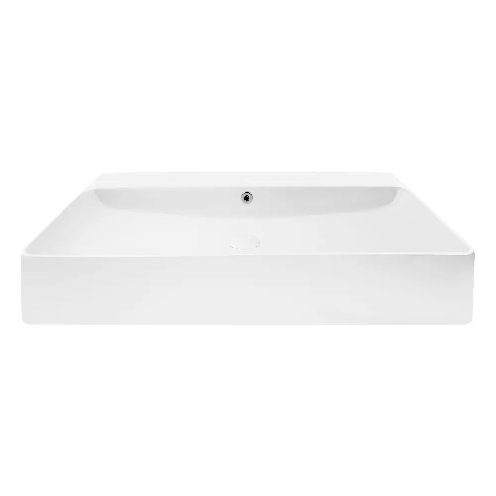 Раковина Qtap Nando з донним клапаном QT1211K419W виконана з кераміки у білому кольорі прямокутної форми. Структура поверхні гладка, тому видалити наліт від жорсткої води не складе ніяких труднощів. Раковина встановлюється на стіну за допомогою кронштейнів еліптичної форми, а також її можна встановити на стільницю при стіні. На раковині передбачена поверхня, на яку можна розмістити склянку або інше ванне приладдя, а також отвір під врізний змішувач.