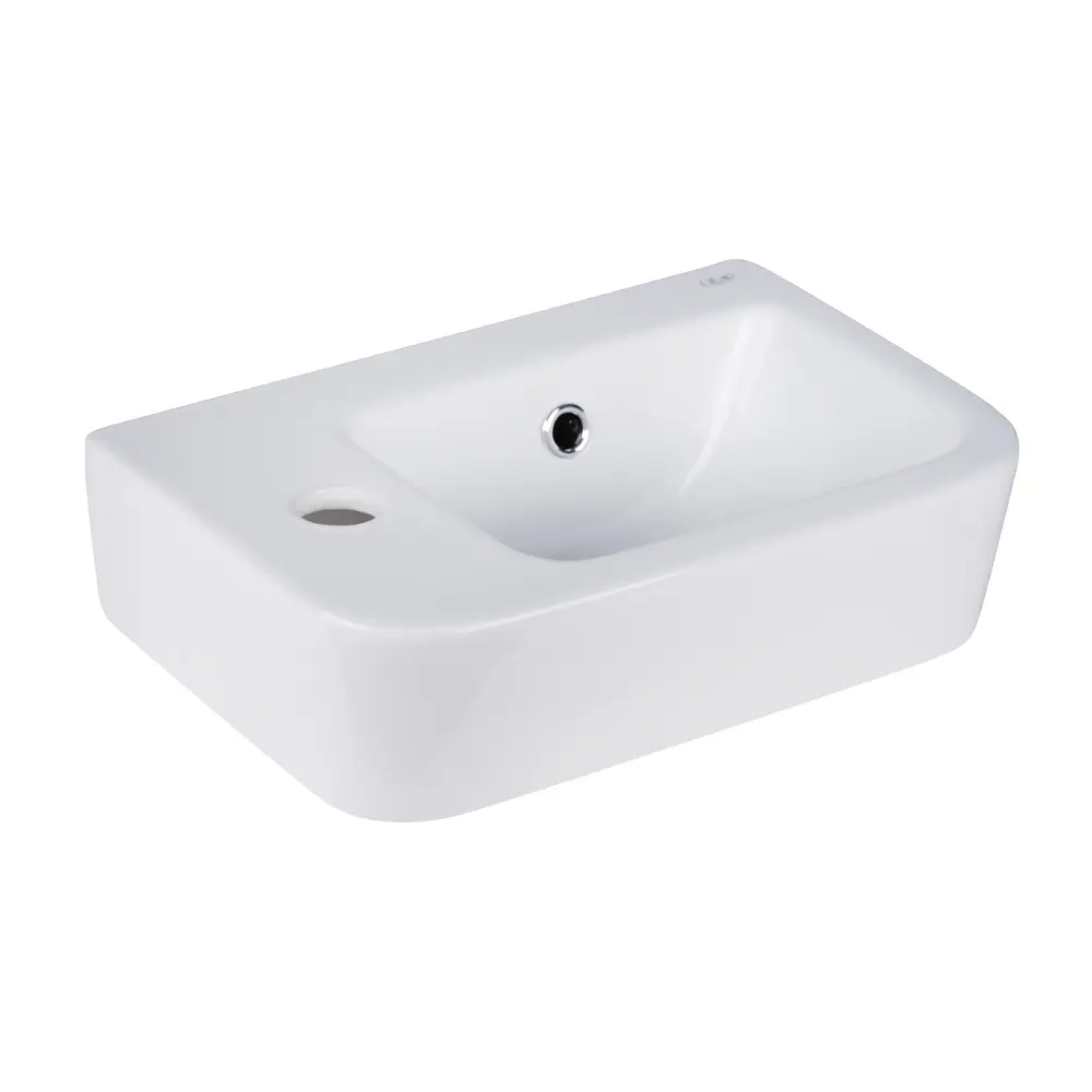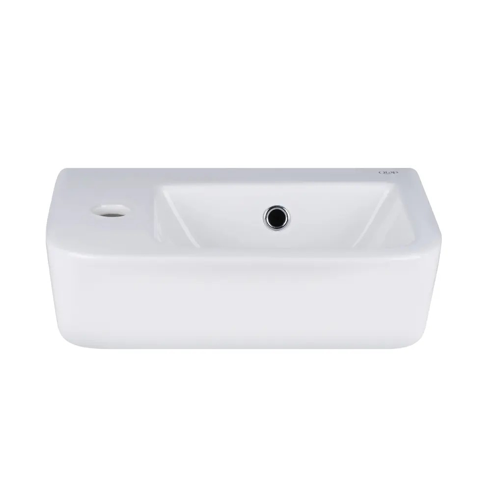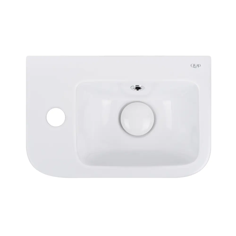 Раковина Qtap Tern QT171110100LW має ергономічну форму, виконана з якісної кераміки білого кольору з отворами для змішувача і переливу. Вона встановлюється на стіну за допомогою кріплень, які входять в комплектацію. На боковій поверхні є можливість розмістити аксесуари і приладдя. Завдяки донному клапану, який входить в комплект поставки, є можливість наповнювати раковину водою. Сифон для раковини купується окремо.