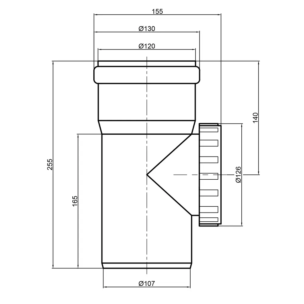 Ревізія TA Sewage для каналізаційної системи всередині житлових будинків, адміністративних і виробничих будинках, має розмір приєднання 110 мм. Застосовується для інстпекції каналізаційного трубопроводу за допомогою кришки збоку фітинга, це легкий і простий спосіб для перевірки системи на наявність засмічень і їх прочищення.