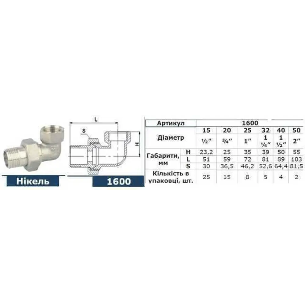 Характеристики згін 1/2 кутовий нікель Solomon 1600: