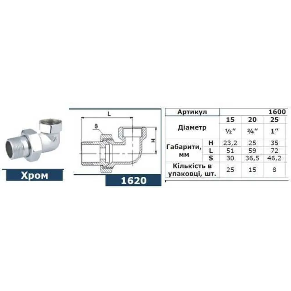 Американка-згін 3/4 кутовий ХРОМ Solomon 1600 полірований