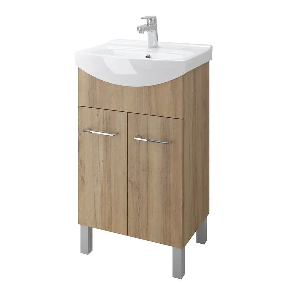 Підлогова шафа OLIVIA має просторий інтер’єр, де розміщуються необхідні предмети для ванної кімнати, закриті подвійними дверима з широкими хромованими ручками. Фасад виготовлений з МДФ, стійкого до пошкоджень. Проста форма шафи ідеально вписується з наявними прямокутними ніжками. Шафа призначена для самостійного встановлення під умивальником CERSANIA NEW 60.