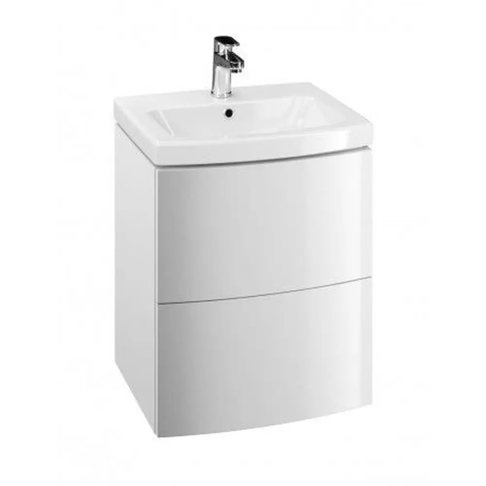 Шафа для умивальника EASY з двома зручними ящиками з системою PUSH для легкого відкриття. Передня частина була трохи закруглена, завдяки чому цілий набув сучасний аеродинамічний вигляд. Модель виготовлена з ДСП і ламінованого МДФ для легкого очищення. Весь завершений вигляд в білому кольорі, який вишукано поєднується з білим кольором раковини EASY. Модель призначена для підвісної установки під умивальник EASY 50 .