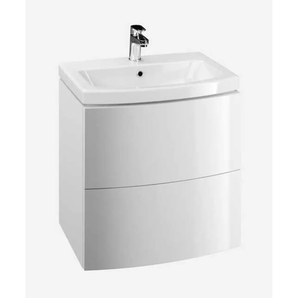 Шафа для умивальника EASY з двома зручними ящиками з системою PUSH для легкого відкриття. Передня частина була трохи закруглена, завдяки чому цілий набув сучасний аеродинамічний вигляд. Модель виготовлена з ДСП і ламінованого МДФ для легкого очищення. Весь завершений вигляд в білому кольорі, який вишукано поєднується з білим кольором раковини EASY. Модель призначена для підвісної установки під умивальник EASY 50 .
