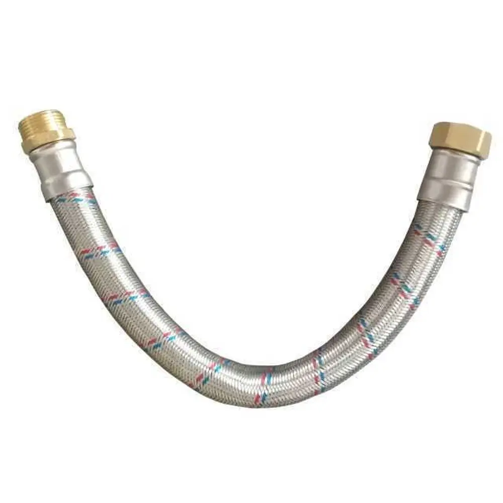 1. Резиновый шланг EPDM - сделан из нетоксичного резины, отличается надежностью и широким диапазоном допустимых температур. Красные и синие нити, вплетенные в оплетку, свидетельствуют о возможности использования гибкого шланга для горячей и холодной воды.
